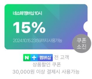 네쇼페15%쿠폰 | 최소3만원이상구매시(최대1만원할인쿠폰) |