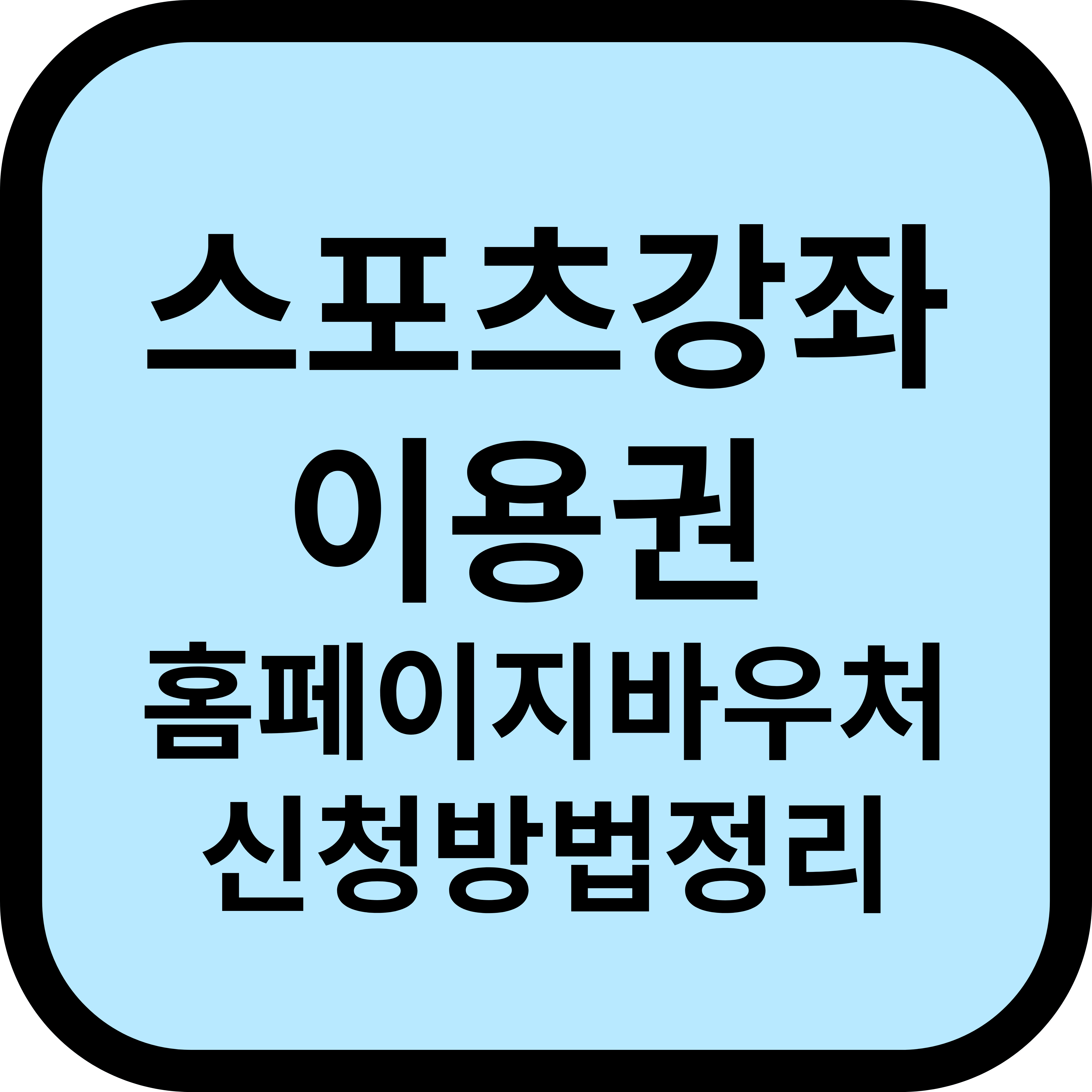 - 신청창구: 스포츠강좌 이용권 홈페이지(온라인) 또는 주민센터(서면신청)